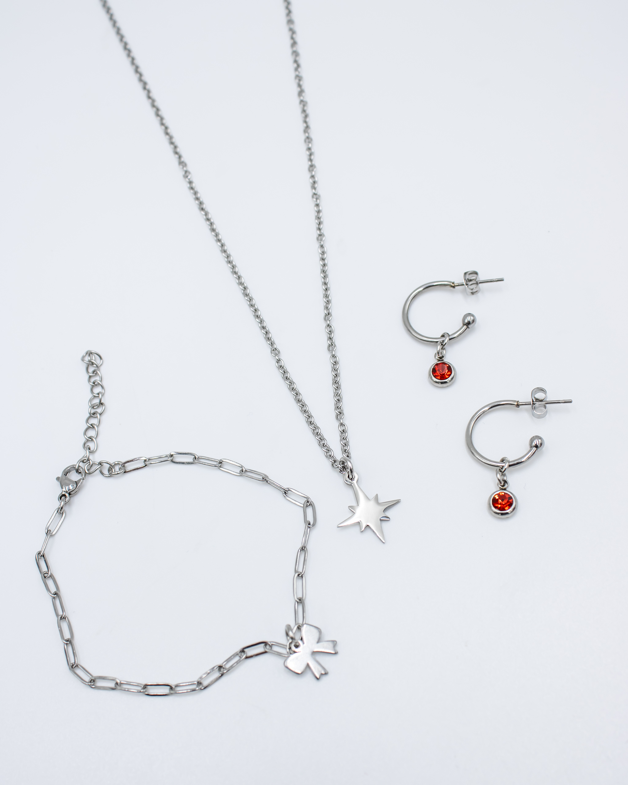 (Αν θέλετε να δείτε ακριβώς τι περιέχει, υπάρχουν φωτογραφίες με: α) τα κοσμήματα που περιέχει το κουτί με την επιλογή ασημί ατσάλι και, β) τα κοσμήματα που περιέχει το κουτί με την επιλογή χρυσό ατσάλι).