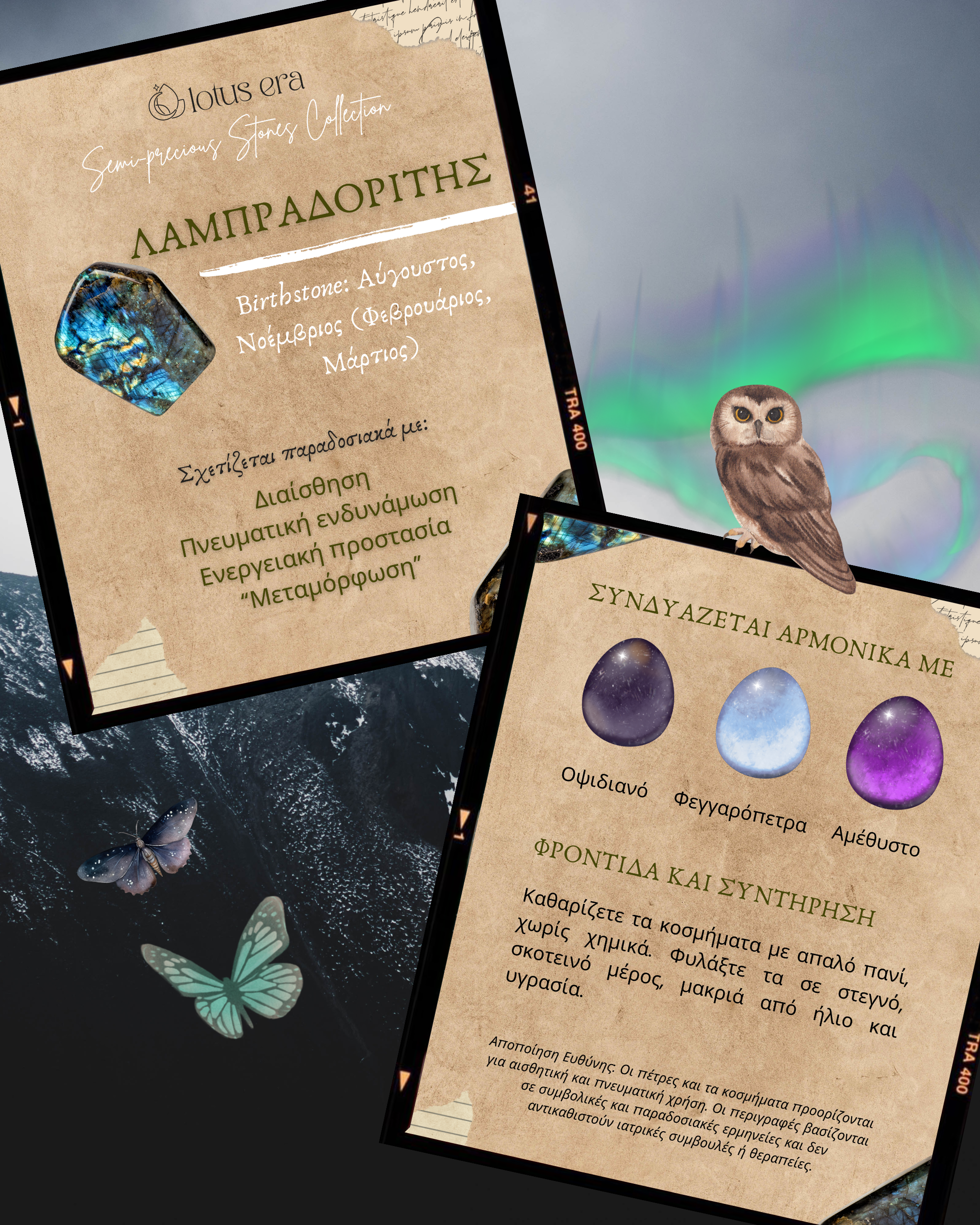 Σημείωση: Λόγω της φύσης των ημιπολύτιμων πετρών, τα χρώματα και τα μοτίβα μπορεί να διαφέρουν ελαφρώς από αυτά που εμφανίζονται στις φωτογραφίες. Κάθε κόσμημα είναι μοναδικό.