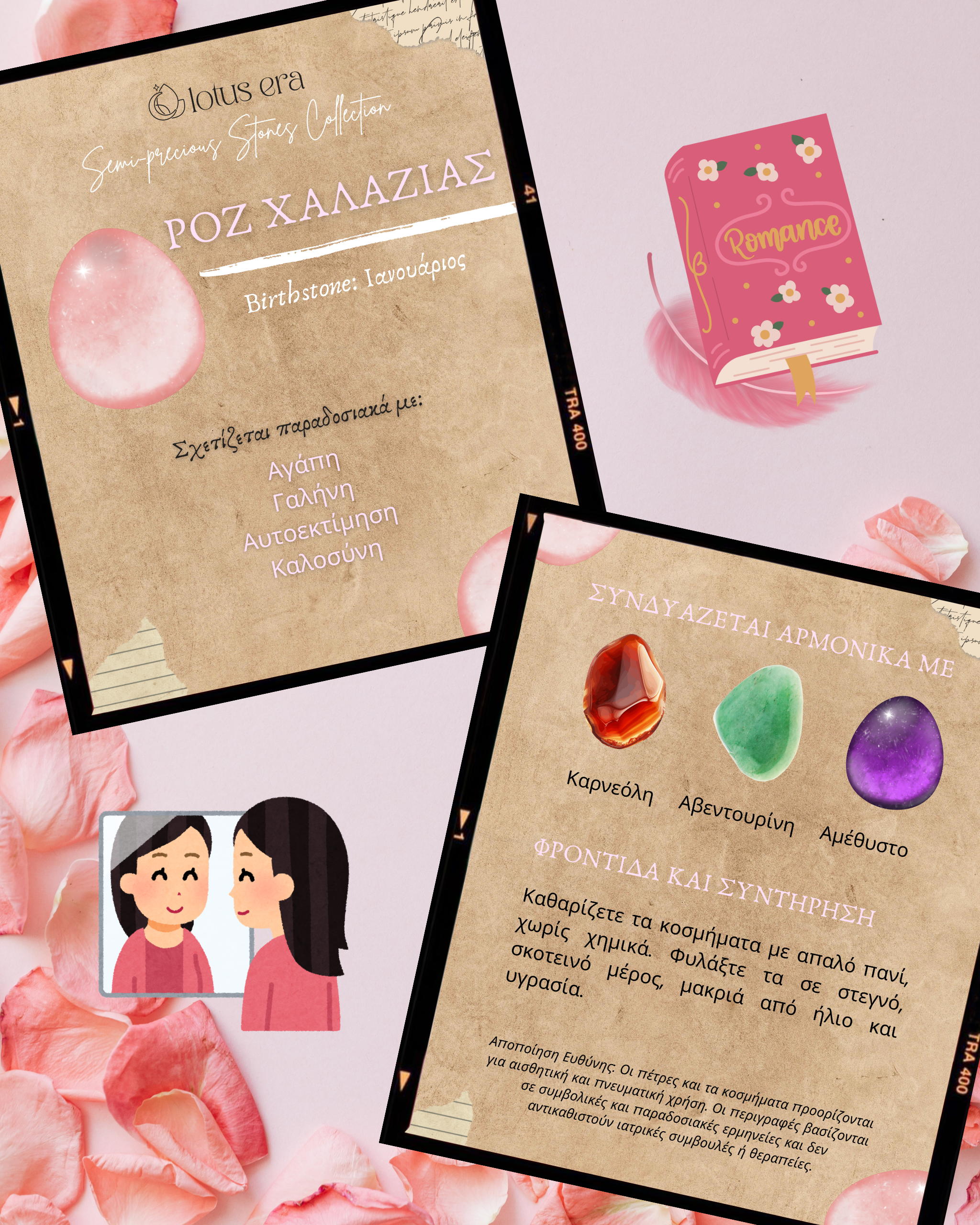 💞 Ένα κόσμημα που συμβολίζει romance και self-love, συνδέοντας τη γαλήνη του ροζ χαλαζία με την ομορφιά του φεγγαριού.